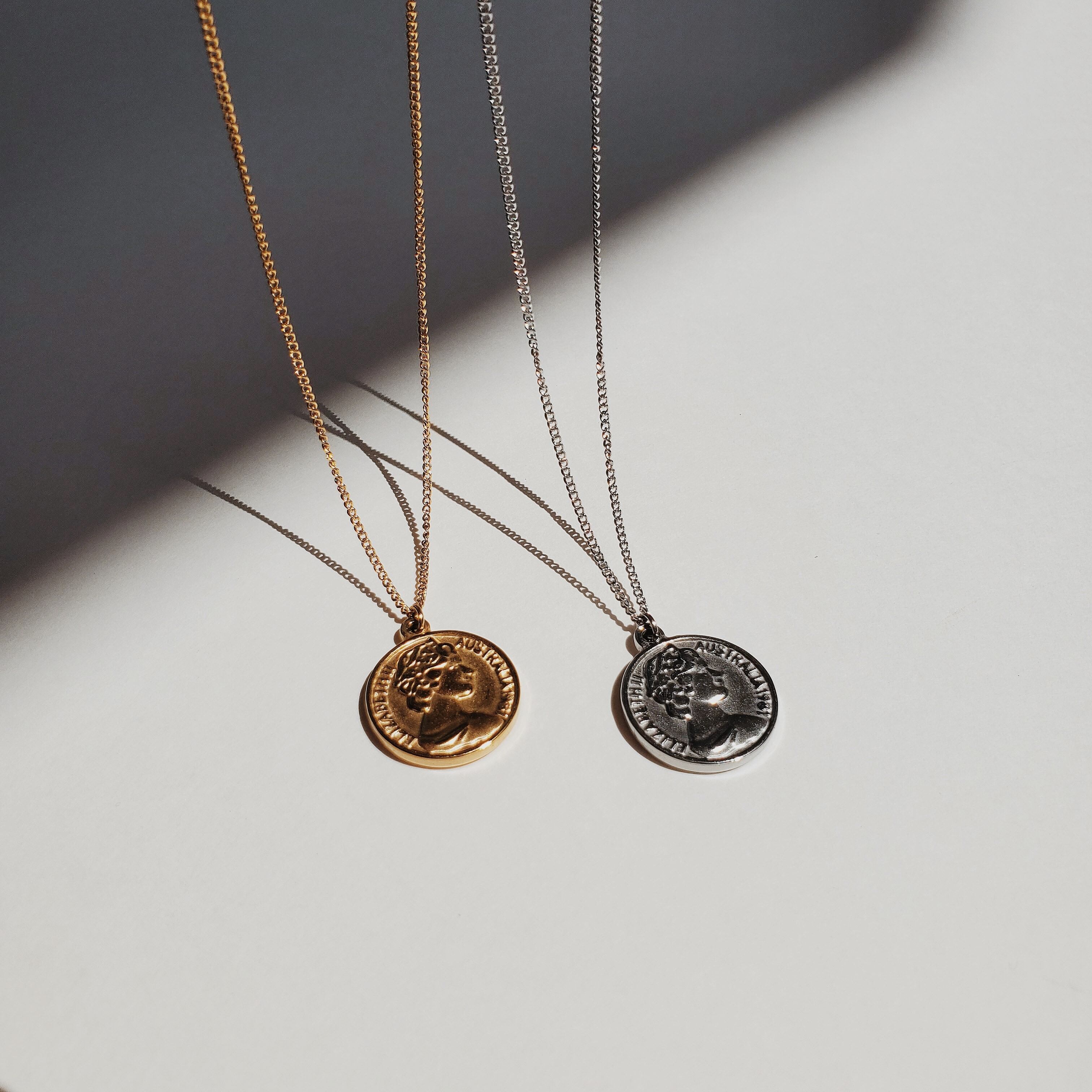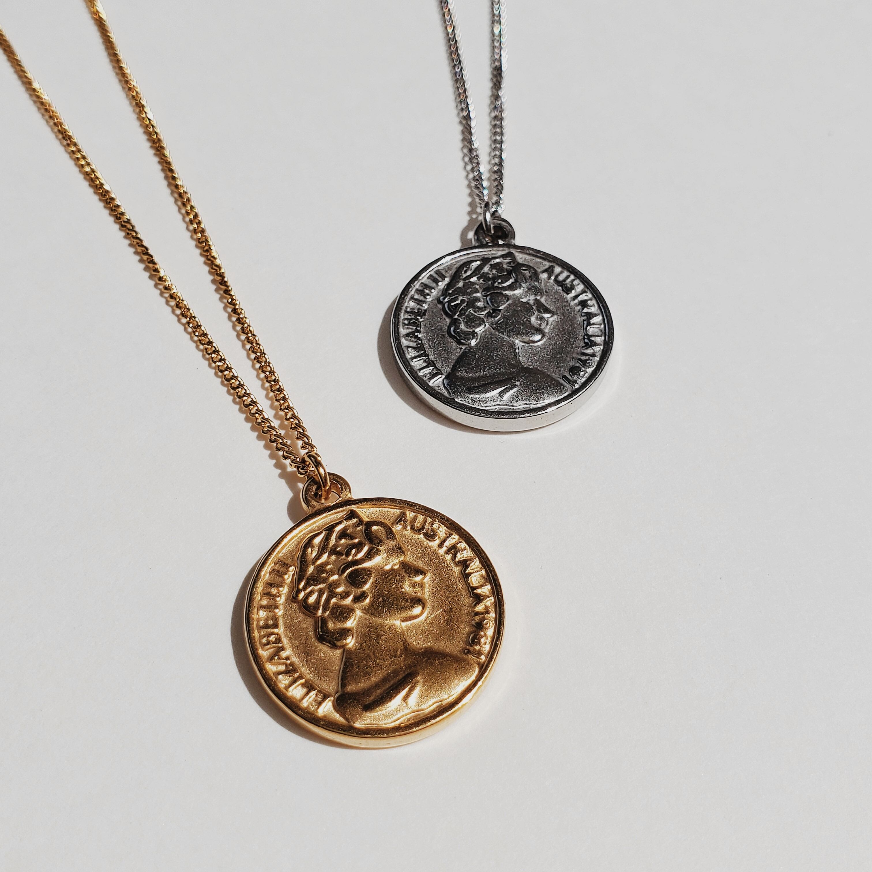イギリスの旧硬貨であるペニーを模倣したコインネックレス。